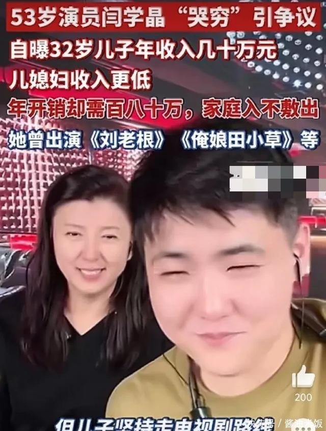 闫学晶继续剖析,一部戏里,一个演员如果能演超300场戏,那大概能挣个二三十万,但是就这么多,她儿子没当过男主角。