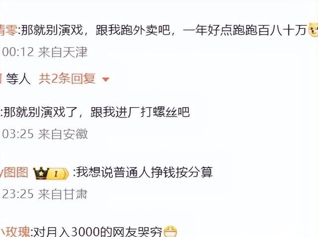 她在留言区回应,你不知道北京的消费啊,几十万,咱说一个戏能给他五十万吗?能吗?给不了,能挣个二三十万一部戏。