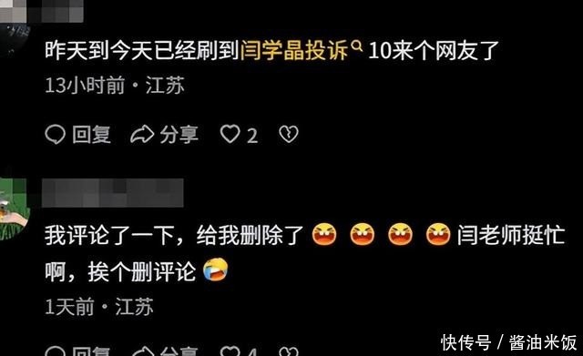 有很多个网友发声,说自己关于闫学晶哭穷的视频都被闫学晶举报下架了。